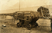 The coal grinder was done in 3Ds Max and rendered with Mental Ray. This model was a challenge as I had only one image and that angle to model from. I used color and texture information from CAT vehicles. All textures where done procedurally.